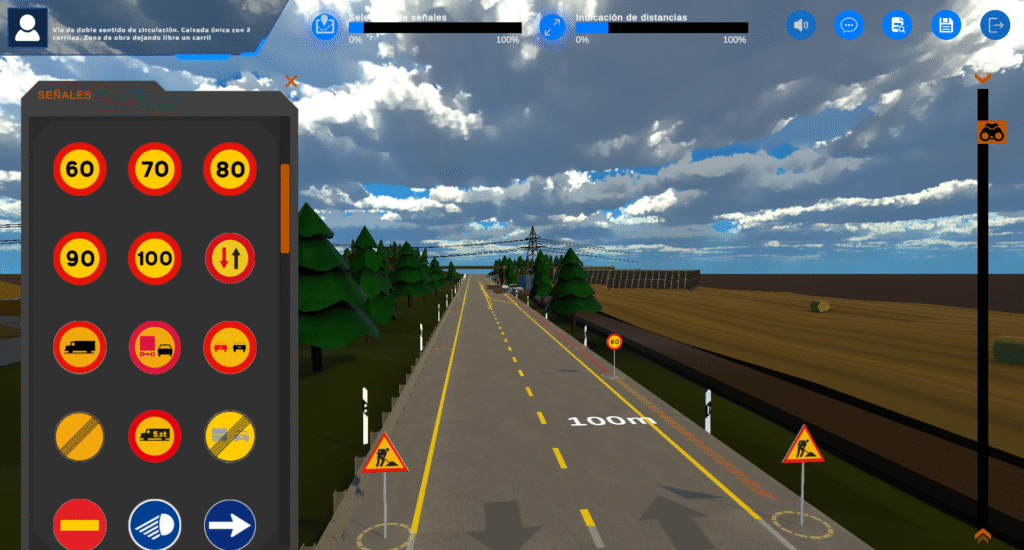 83IC-APP es una aplicación para la formación en señalización de carreteras durante operaciones de construcción, conservación y explotación que favorece el aprendizaje al desarrollarse en entornos inmersivos a través de Realidad Virtual, si bien también puede usarse desde un monitor de un PC o una Tablet.